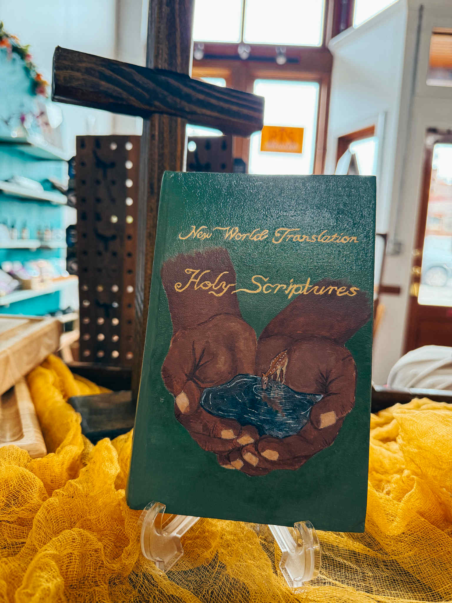 This striking hand-painted Bible is a beautiful depiction of the Living Water found in Christ. The imagery of cupped hands holding a pool of water reminds us that even in dry seasons, we are sustained by the One who offers living water that never runs out.