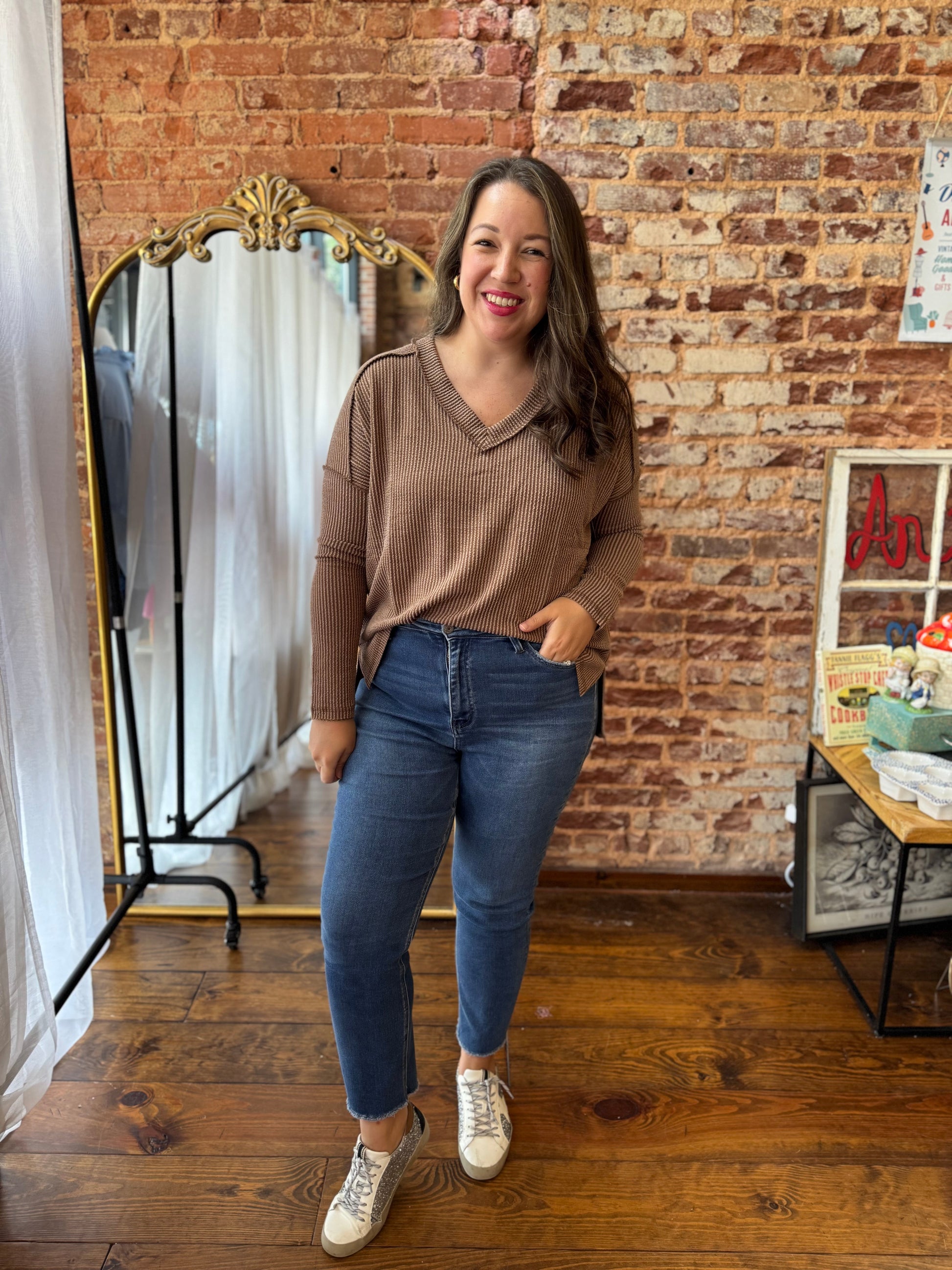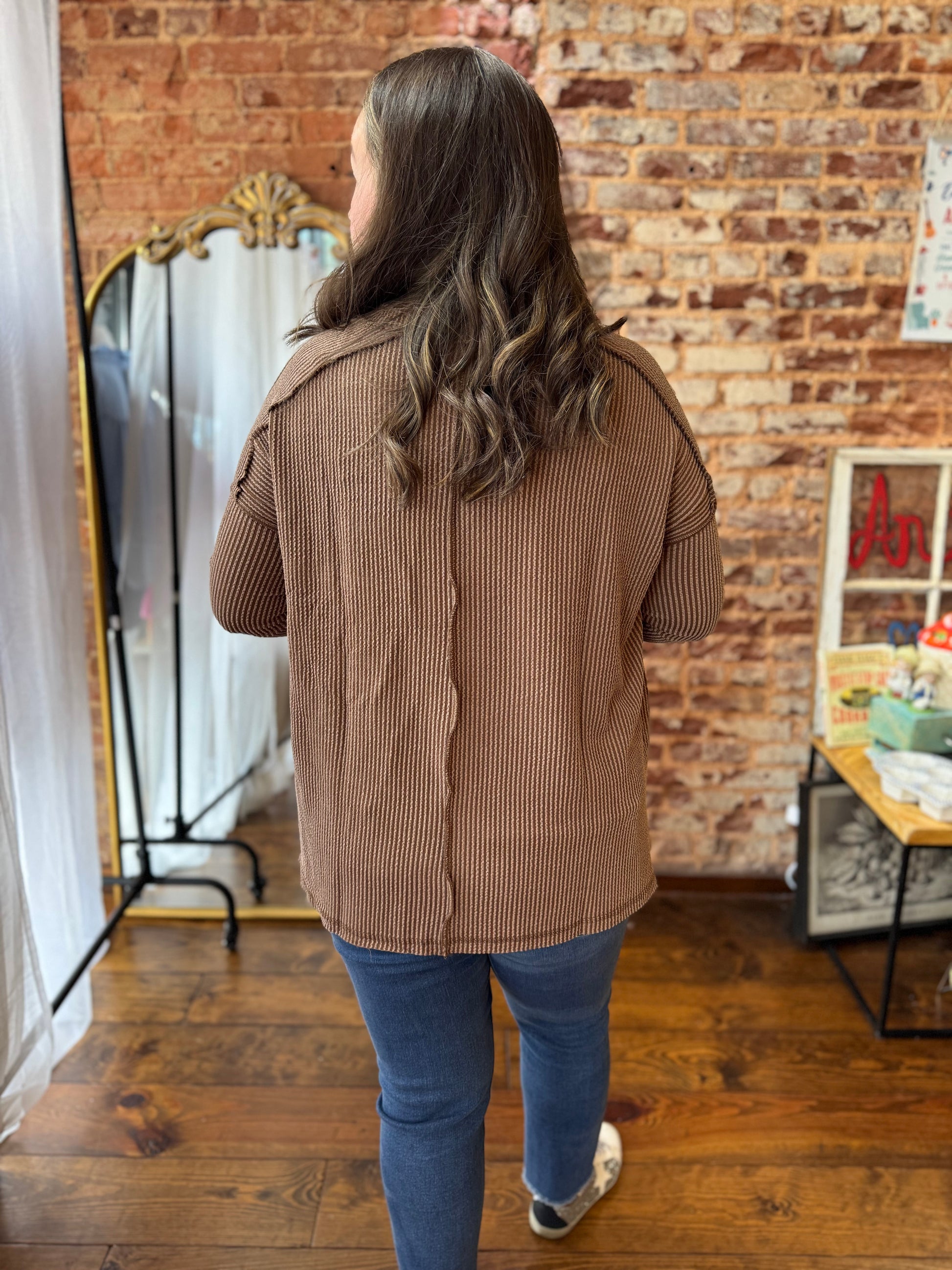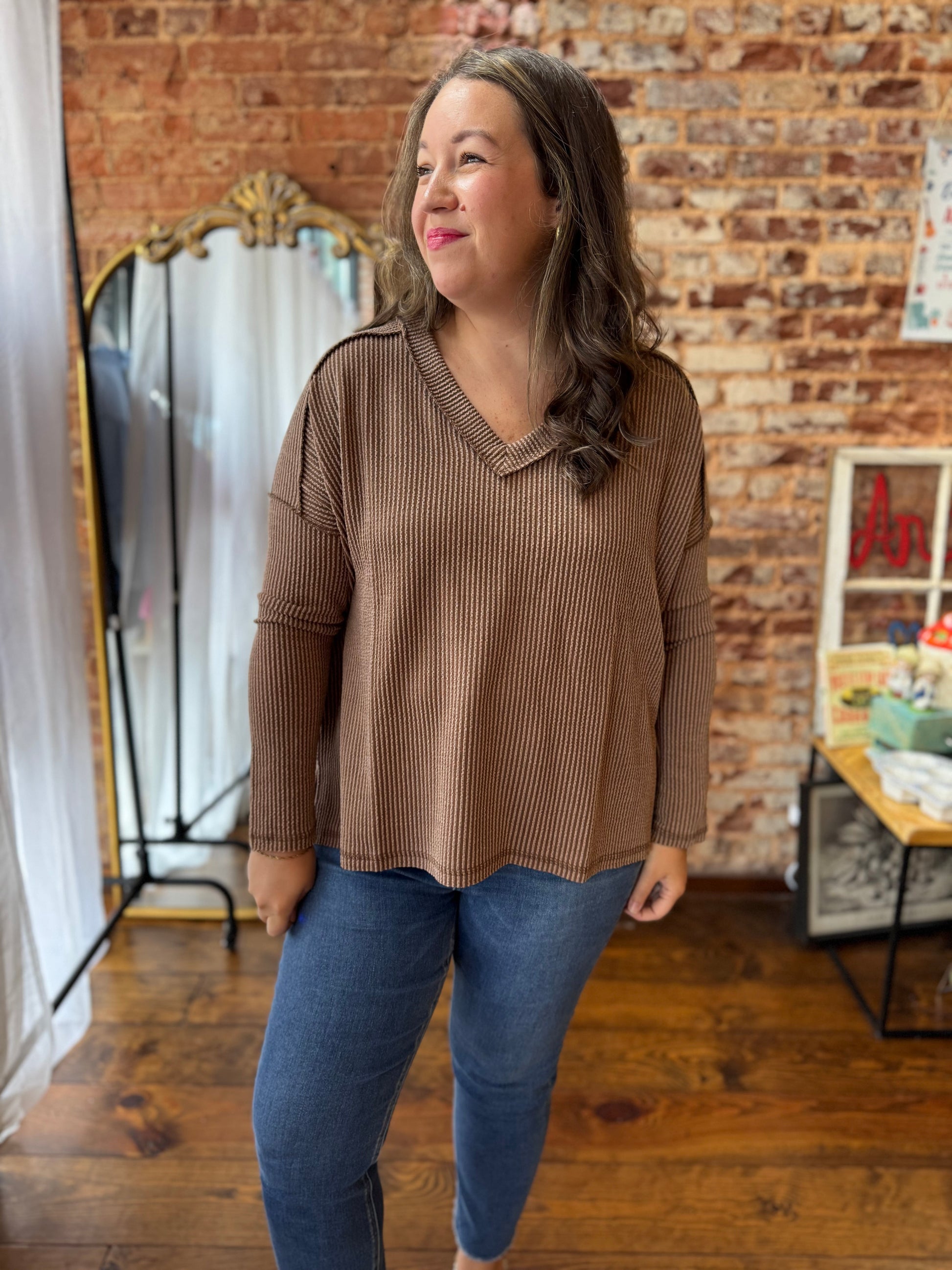 Simple Long Sleeve Ribbed Knit Top - Fall Doorbuster